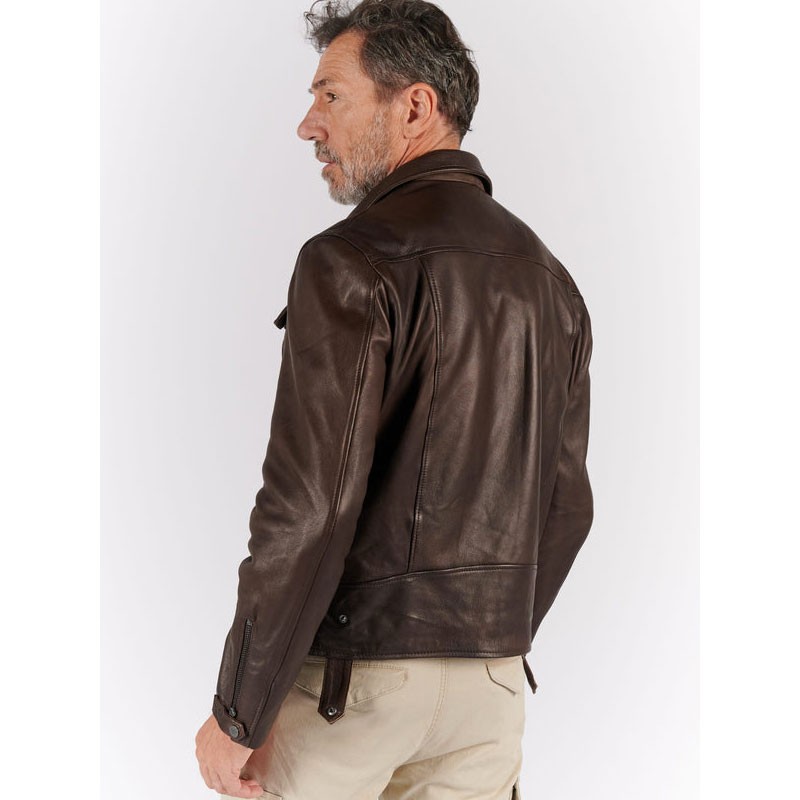 This men's jacket is made of 100 % genuine lamb leather, skilfully produced in Italy. With a regular fit and pure cotton lining, this garment embodies Italian craftsmanship and versatility, making it a must-have in your wardrobe.
