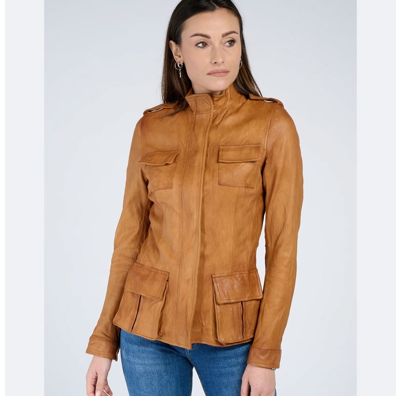 Ladies' jacket in genuine lambskin leather 100% Made in Italy.