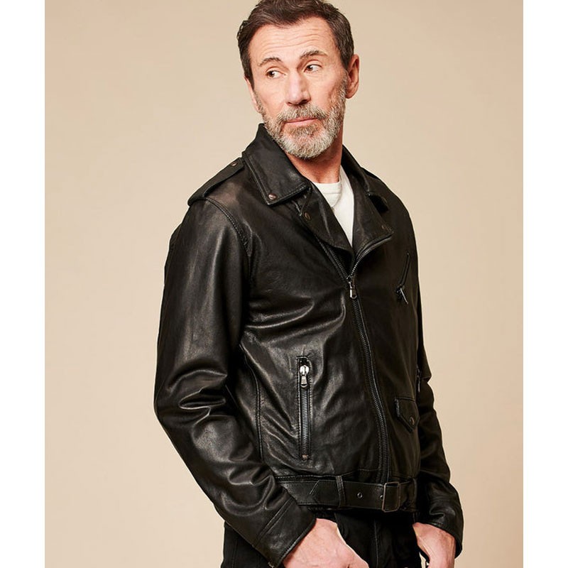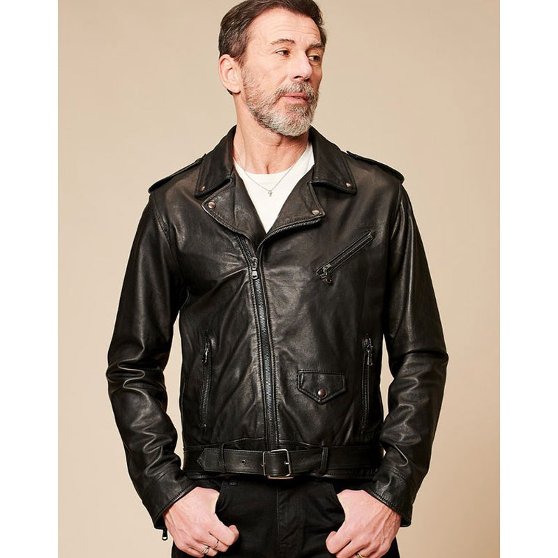 【BARONE FIRENZE】CHIODO DI PELLE CON CINTURA