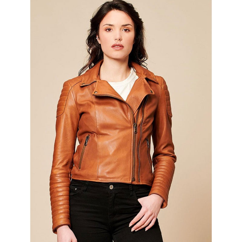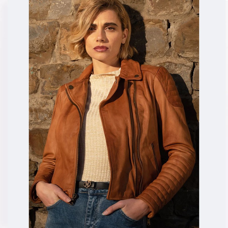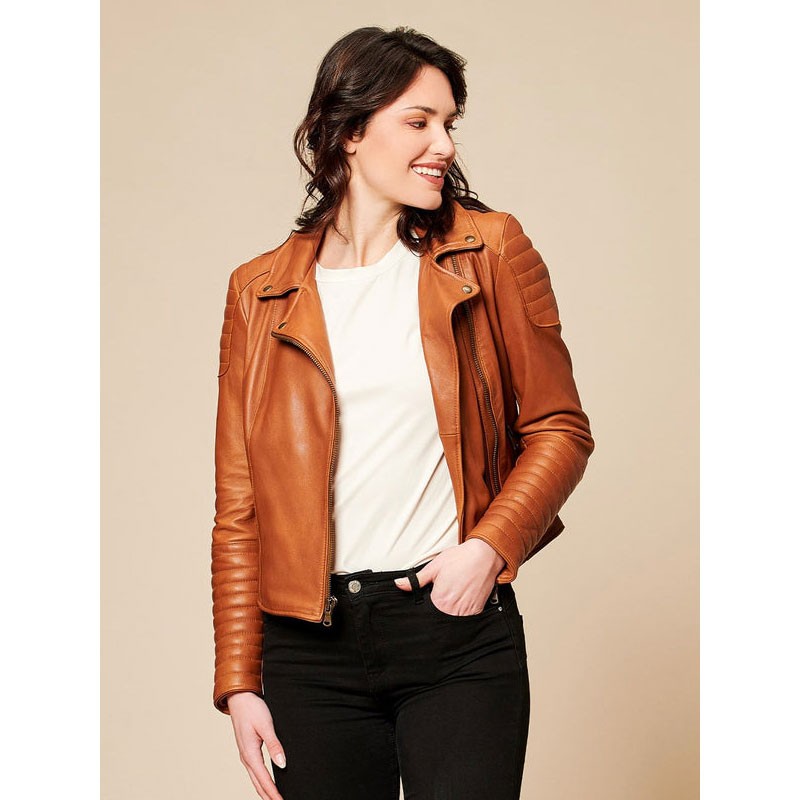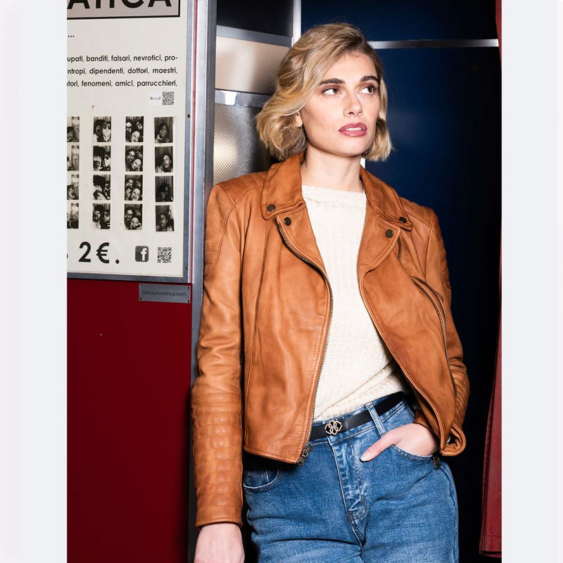 Giacca da donna in vera pelle di agnello 100% Made in Italy.