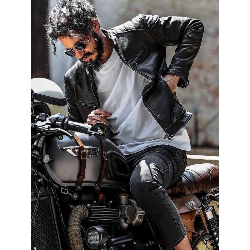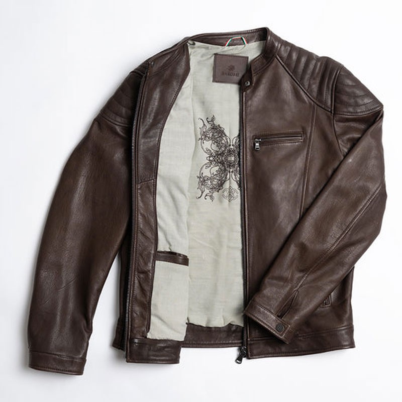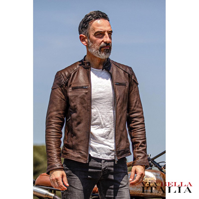 Natura ibrida e dettagli in risalto. Elton Gold Barone maschera lo stile biker dietro le linee dolci e regolari di un giubbotto classico. Perfetto per chi ama una giacca semplice ma dal carattere determinato. Giacca da uomo in vera pelle di agnello 100% Made in Italy.