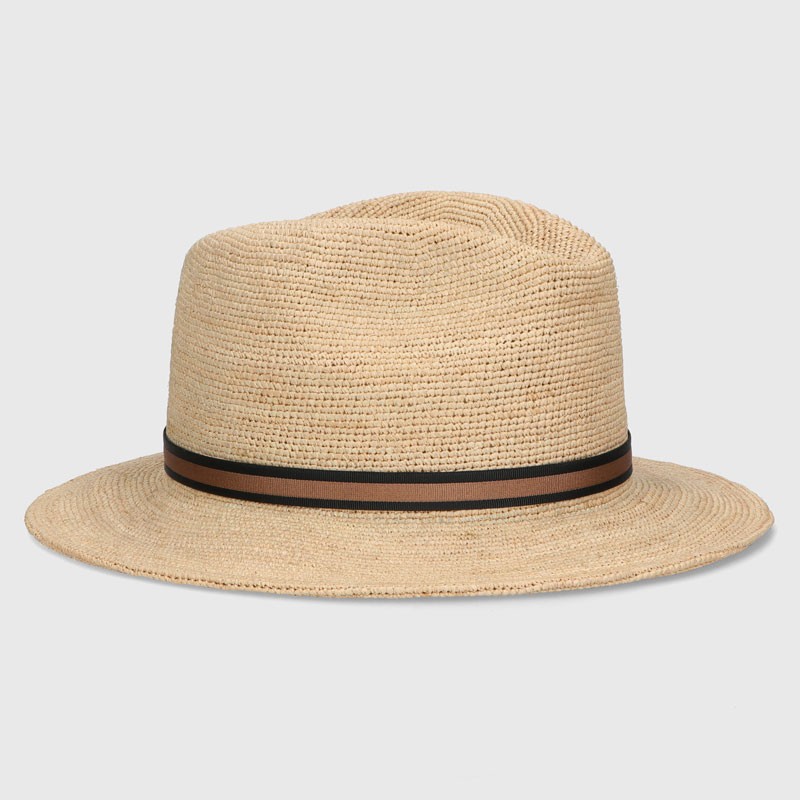 "Argentina" Fine raffia crochet large brim 7 cm., rollable Bicolor head band 1.5 cm., with branded press stud.