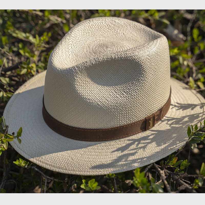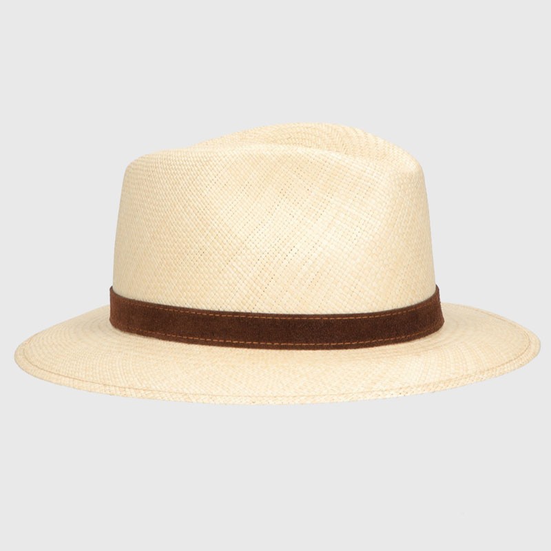 The Country Panama Quito has a 6cm medium brim and 2cm leather contrast hatband. The production of Borsalino straw hats begins in Ecuador, where the local straw is harvested from the stalks of the toquilla palm tree, boiled and dried under the sun. A process that can take up to six months. The skilled Ecuadorian artisans weave by hand, making extremely fine semi-finished cloches. After careful quality control, the cloches are sent to the Alessandria maison for the continued rigorous and intricate manufacture processes. Then once the ribbon is added, the brim is stiffened before the hat is ready for the final steps: embellishments, stitching, inspection and packaging - all finished by hand. The history of the Panama hat is beyond intriguing. Style your Country Panama Quito with pride.