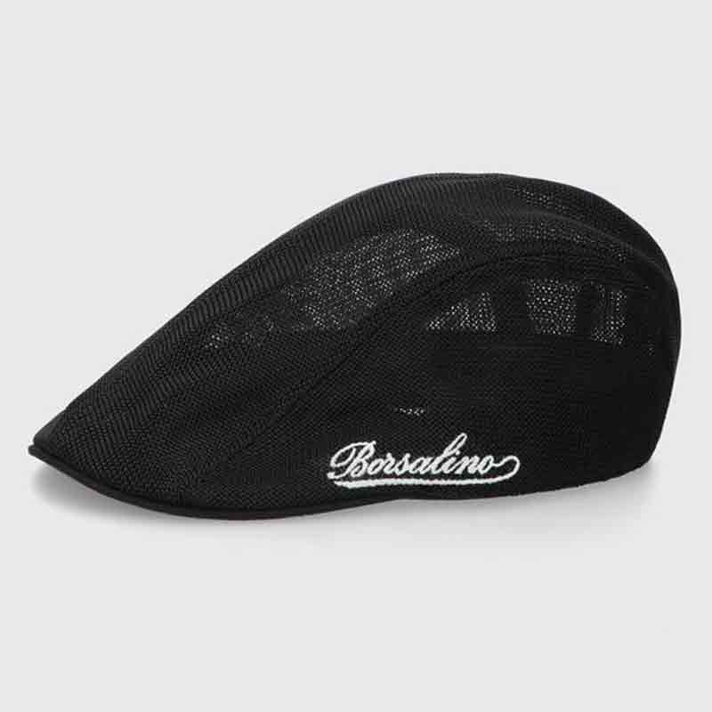 The Flat Cap in mesh material is unlined and features a a solid fabric visor and decorative Borsalino embroidery on the left side.