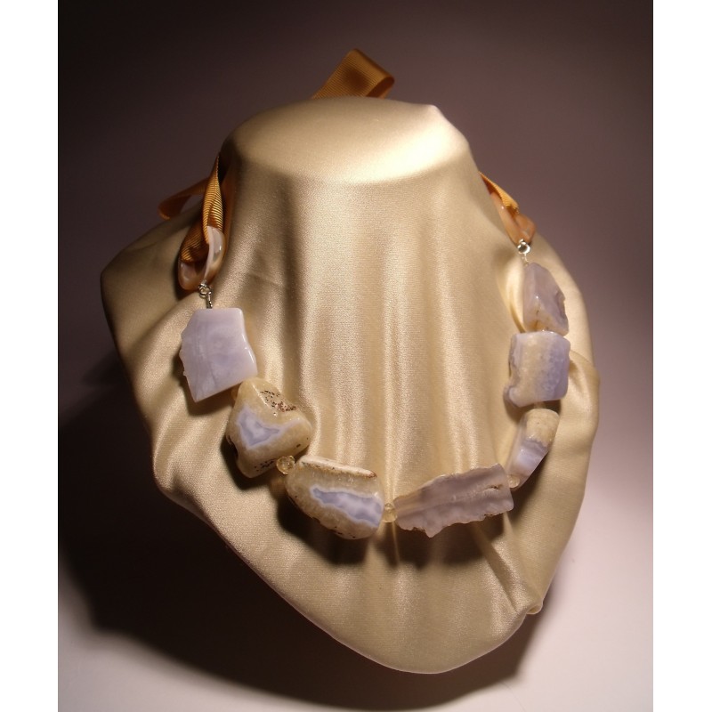 Collana con calcedonio, quarzo citrino con anelli di madreperla