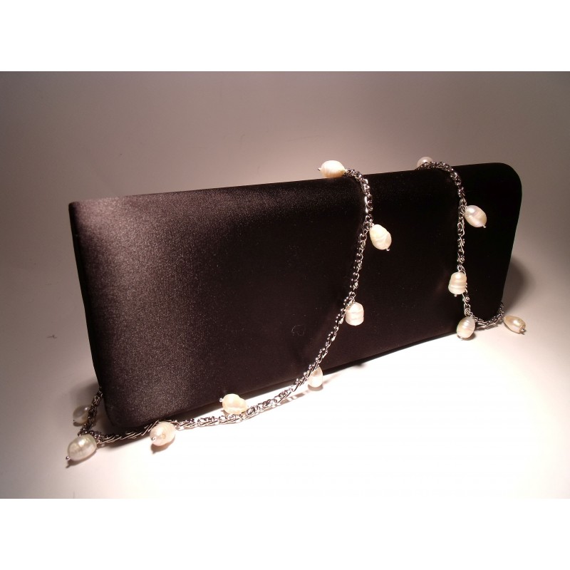 Satin clutch with 1st quality white freshwater pearls on a long chain