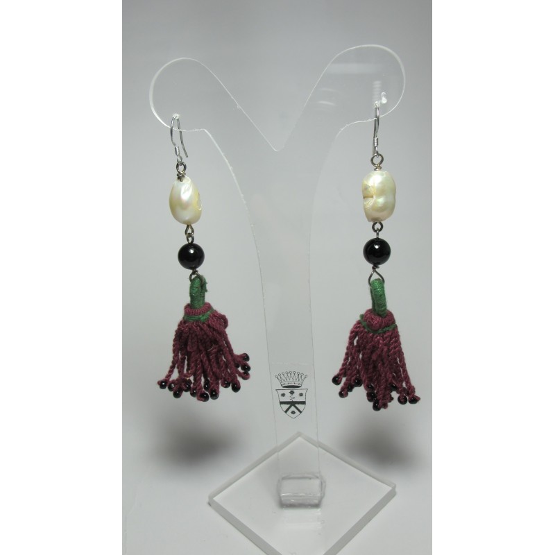Silver earrings with Turkish tassels, onyx and freshwater pearls. Nickel free