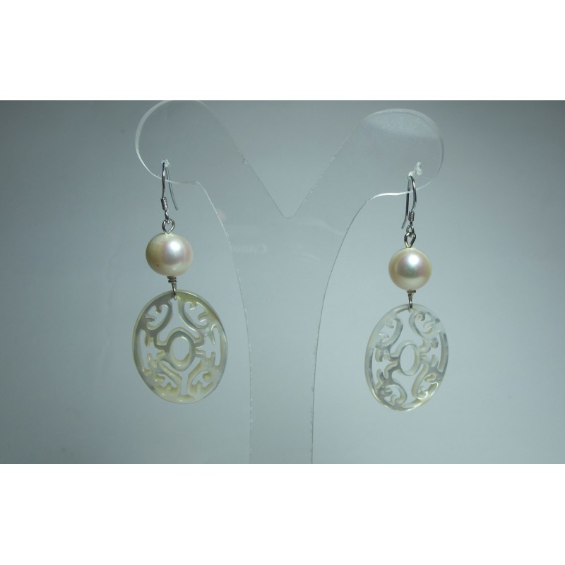 Silver earrings with pearls and mother of pearl