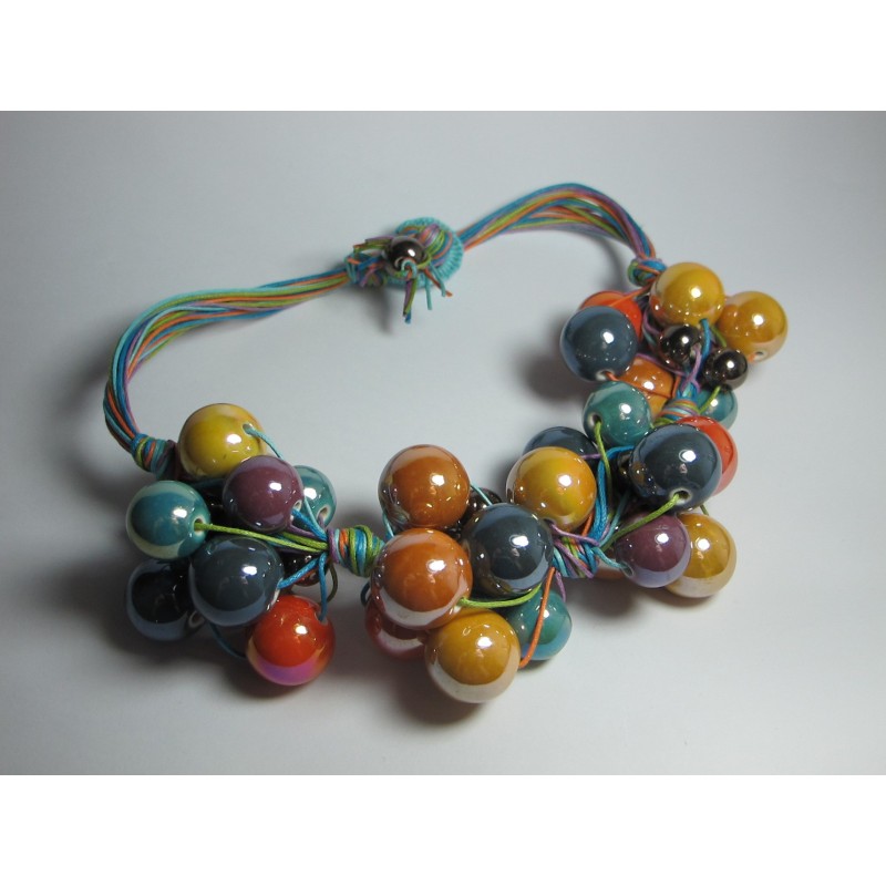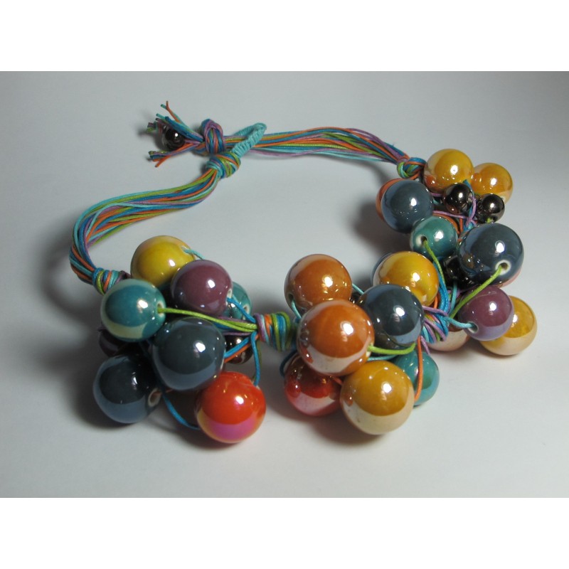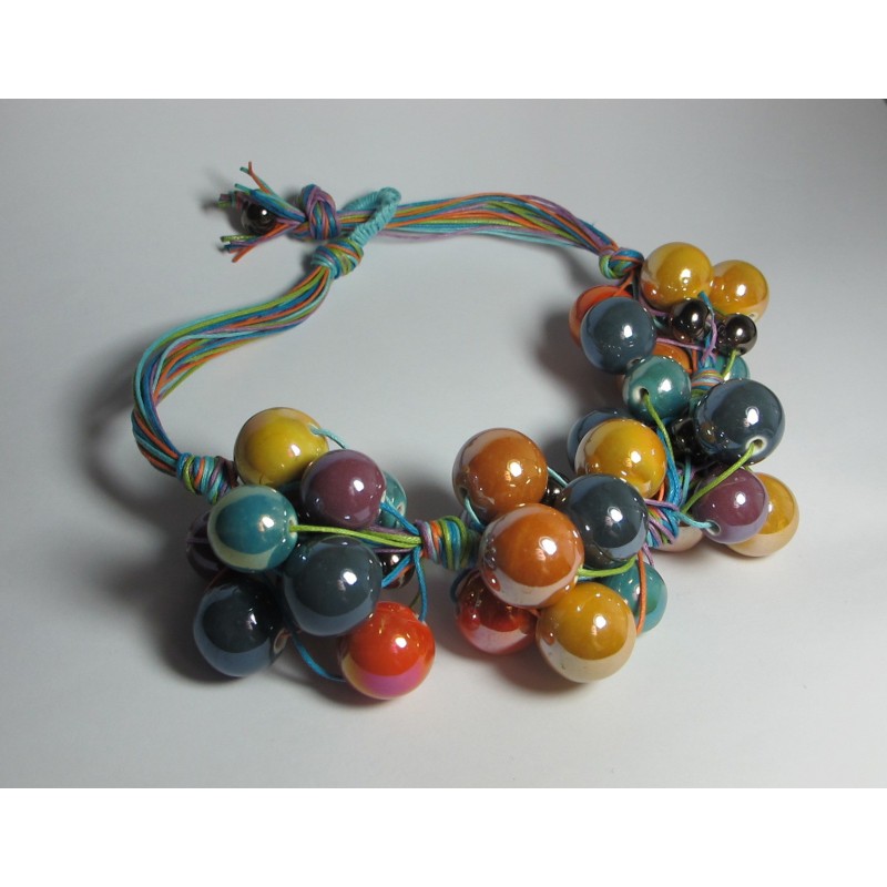 Collana in cotone con grappoli" di ceramica"