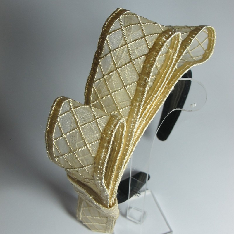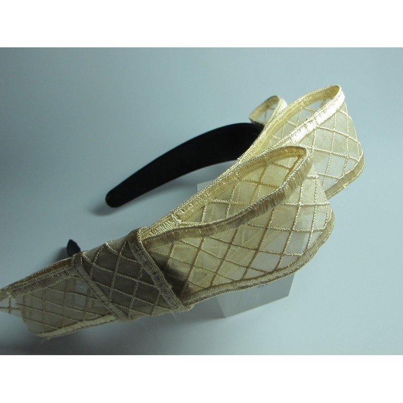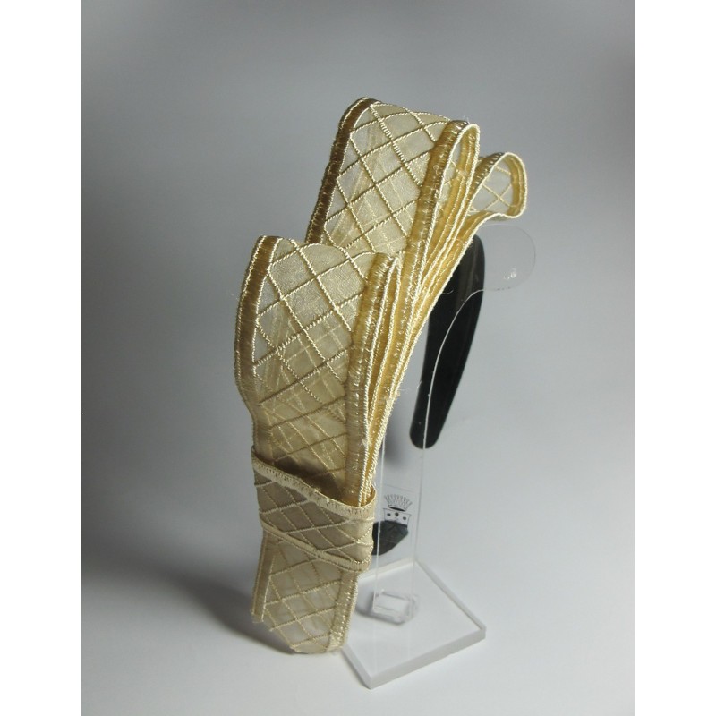 Alice band in brown satin with ivory bow plaid tulle and satin