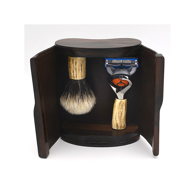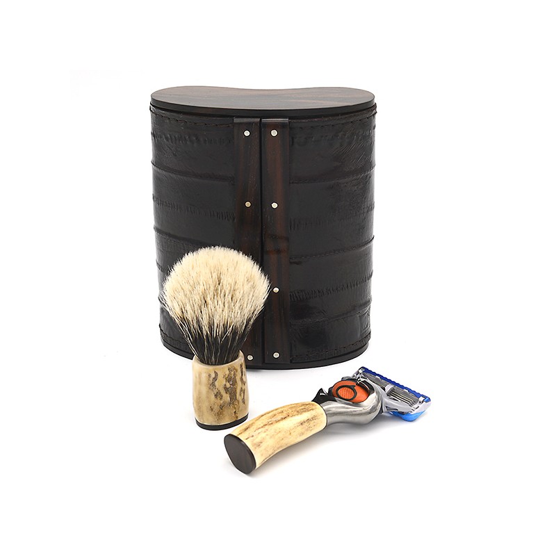 SET DA BARBA IN EBANO MAKASSAR E PELLE D'ANGUILLA CORNO DI CERVO