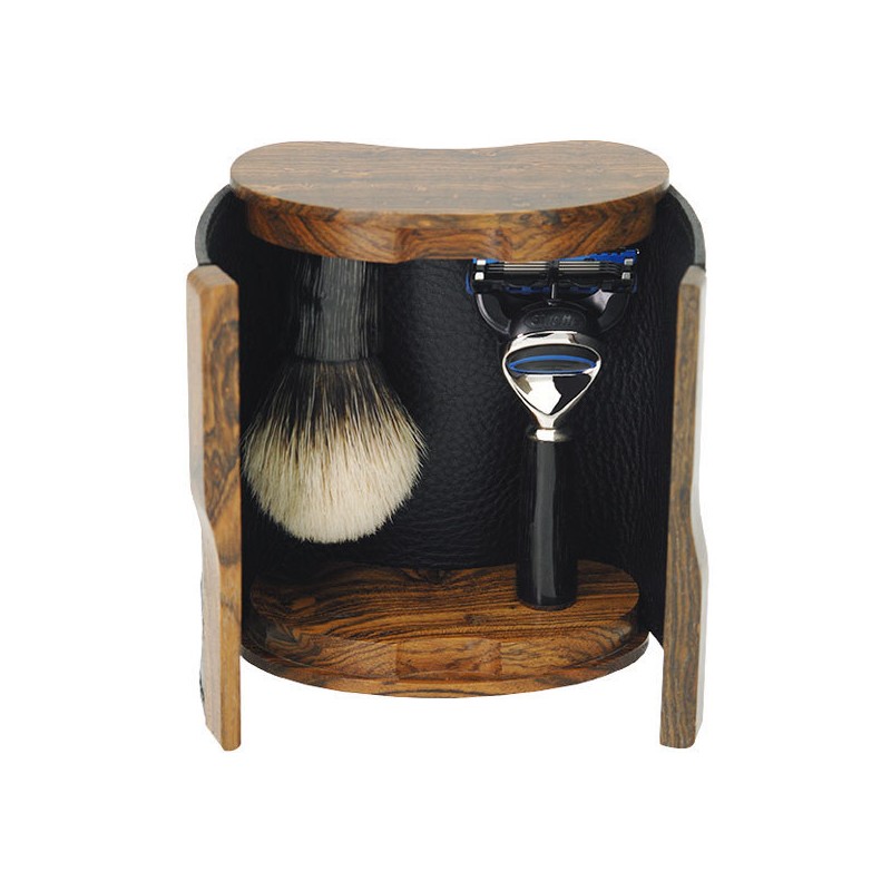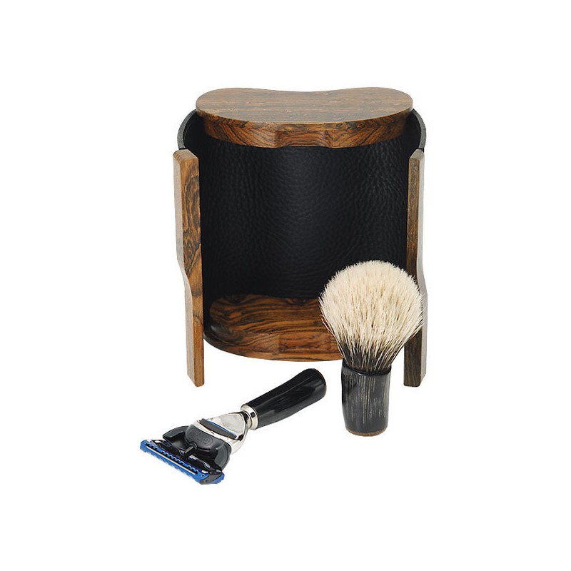 SET DA BARBA IN ZIRICOTE E PELLE D'ANGUILLA CORNO DI IMPALA