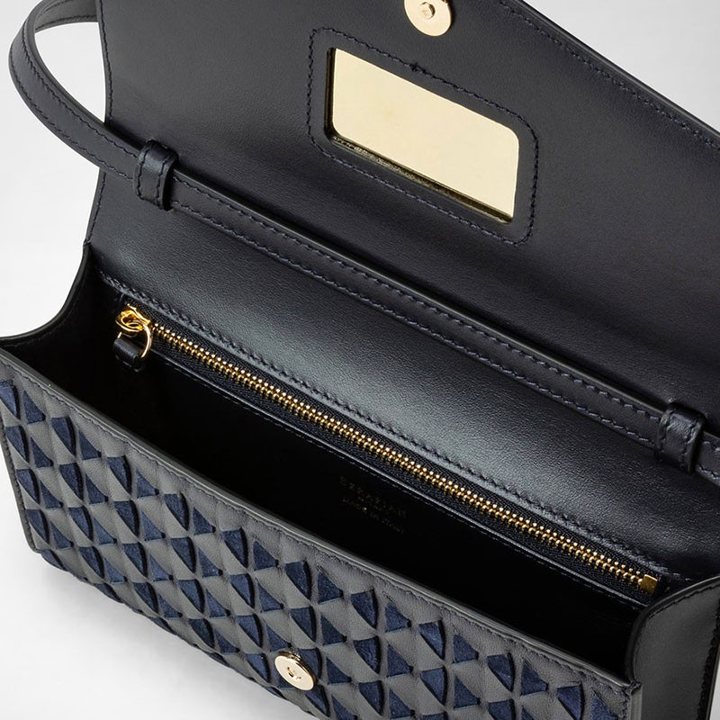 Composition: Hand-woven lamb nappa leather and Italian calfskin leather