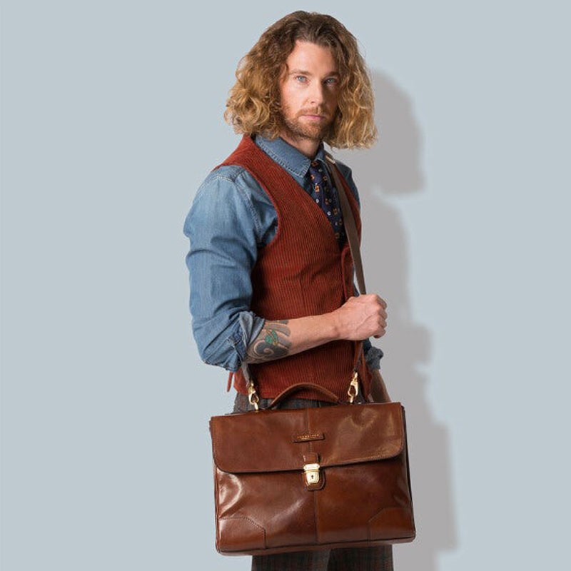 This compact and elegant briefcase is a perfect accessory for work and travel. The quality of the leather and the craftsmanship of the product make it absolutely unique.