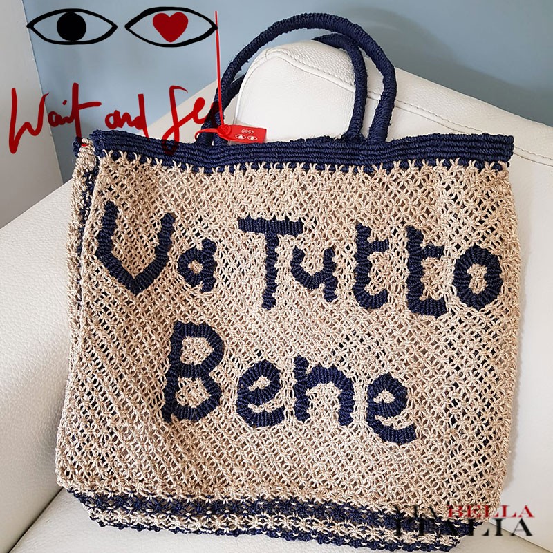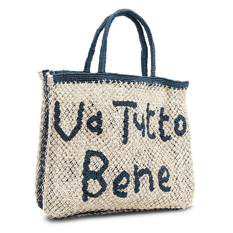 The 'Va Tutto Bene' Navy and Natural tote bag is the perfect bag to have at your side no matter what life throws at you! This handmade bag is produced exclusively for Wait and See and we have no doubt that the motto will serve you well.