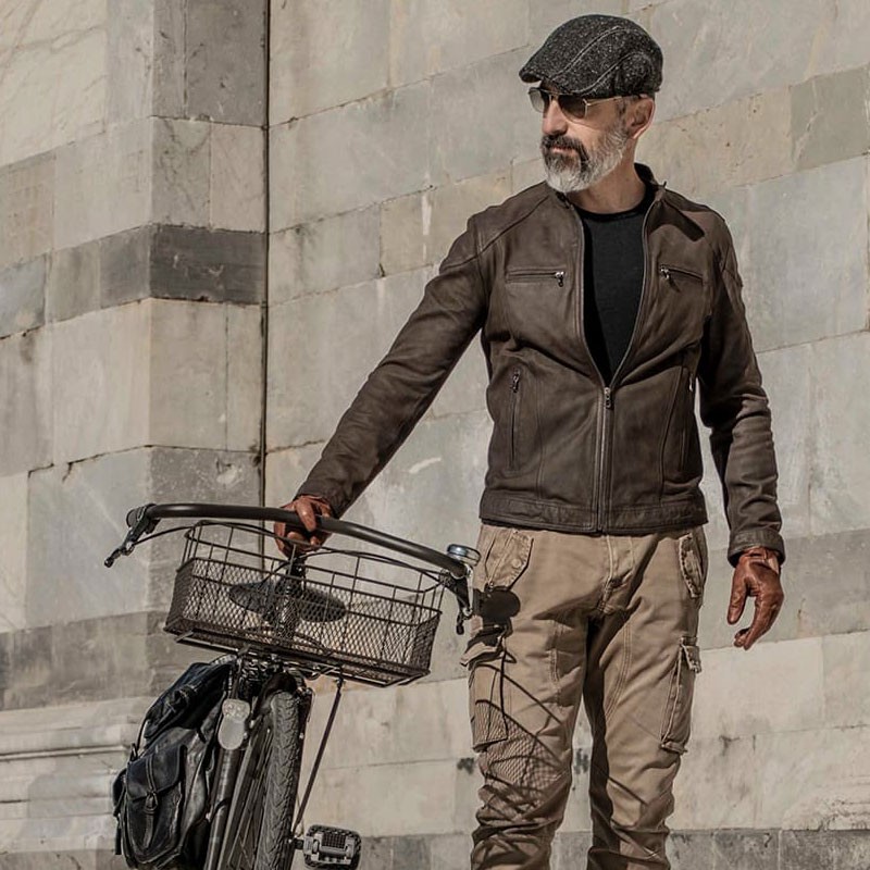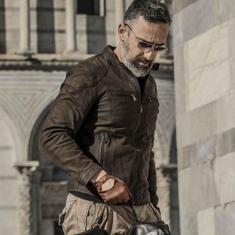 A sporty look with striking details. The Elton Gold Barone combines biker style with the velvety feel of an oil-washed finish. Perfect for those who love a unique jacket with a bold character. Men’s jacket in genuine lambskin, 100% Made in Italy.