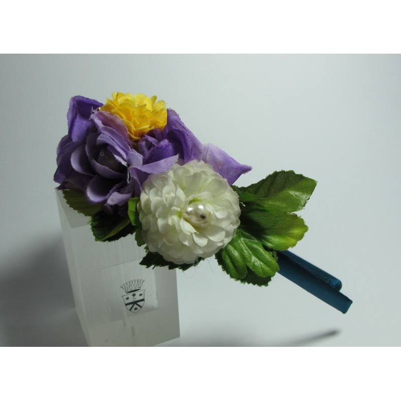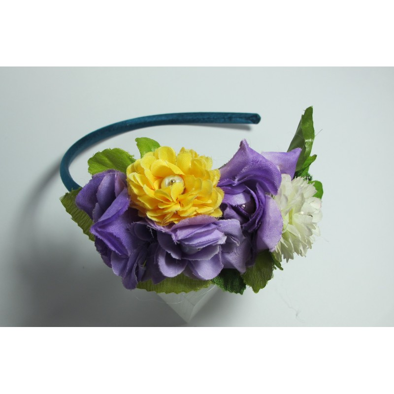 Cerchietto in tessuto blu petrolio con fiori e perle