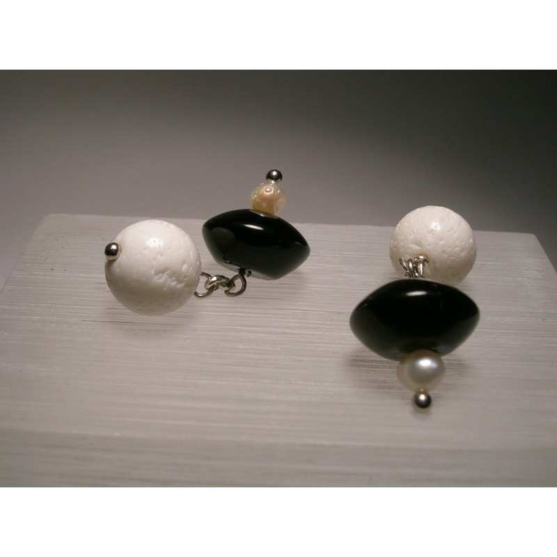 Gemelli con madrepora bianca, onice e microperle di fiume
