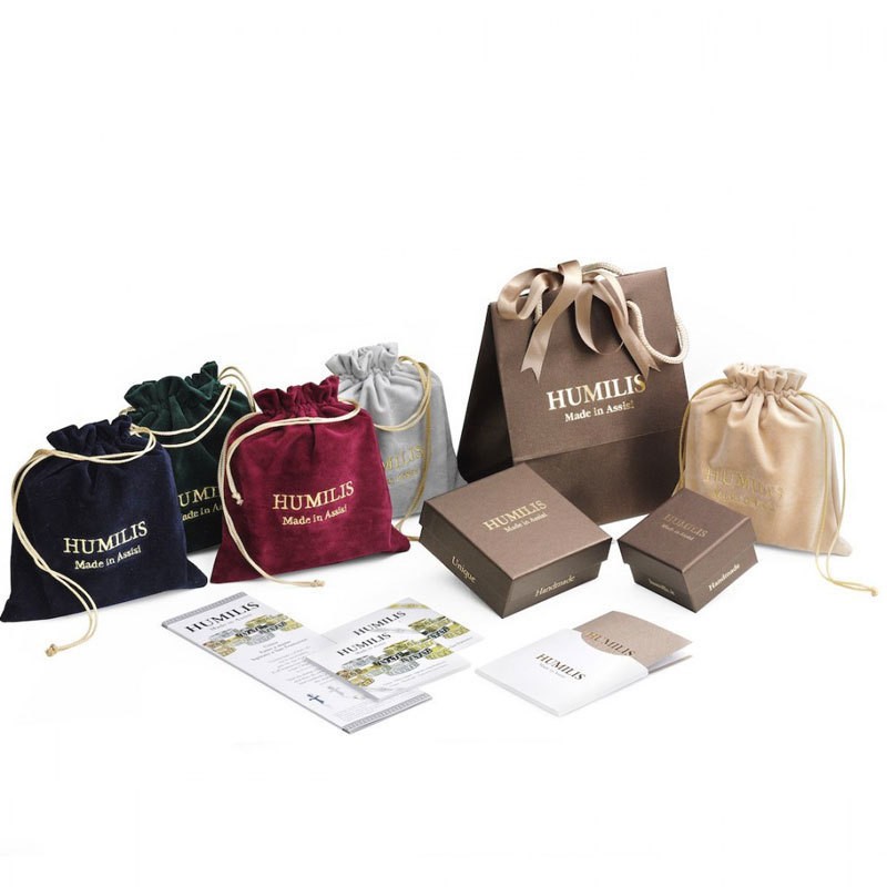 Inoltre, tutto ciò che concerne il packaging, il materiale pubblicitario ed espositivo degli anelli Humilis, è realizzato rigorosamente in Italia presso laboratori artigiani locali.