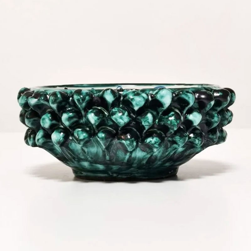 シチリアの陶器の街として有名なカルタジローネより、職人手作りのマヨルか焼きの「幸運を呼ぶ松ぼっくり Pigna。