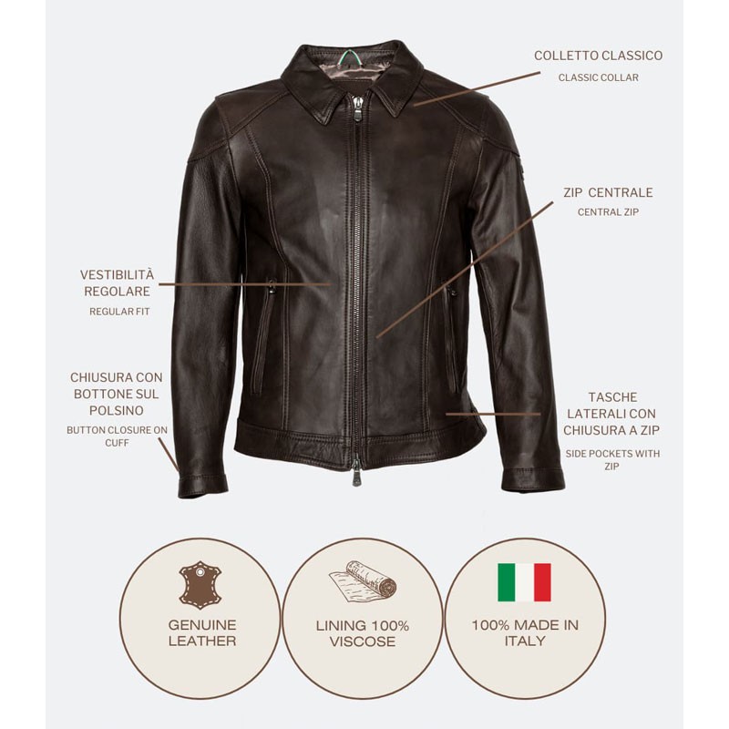 Men's jacket in genuine lambskin leather, 100% Made in Italy.