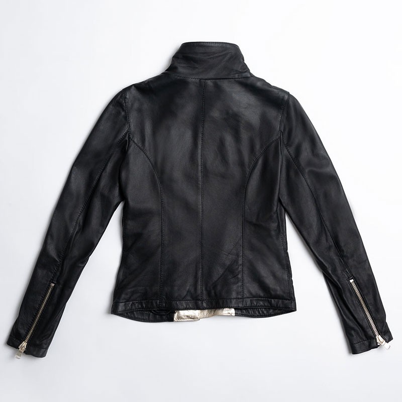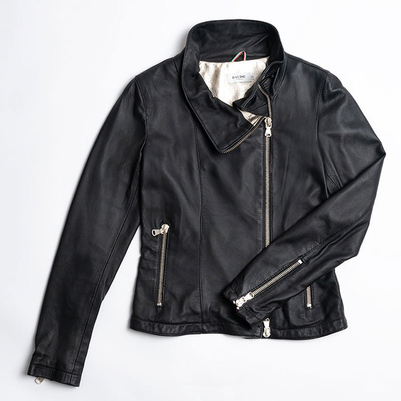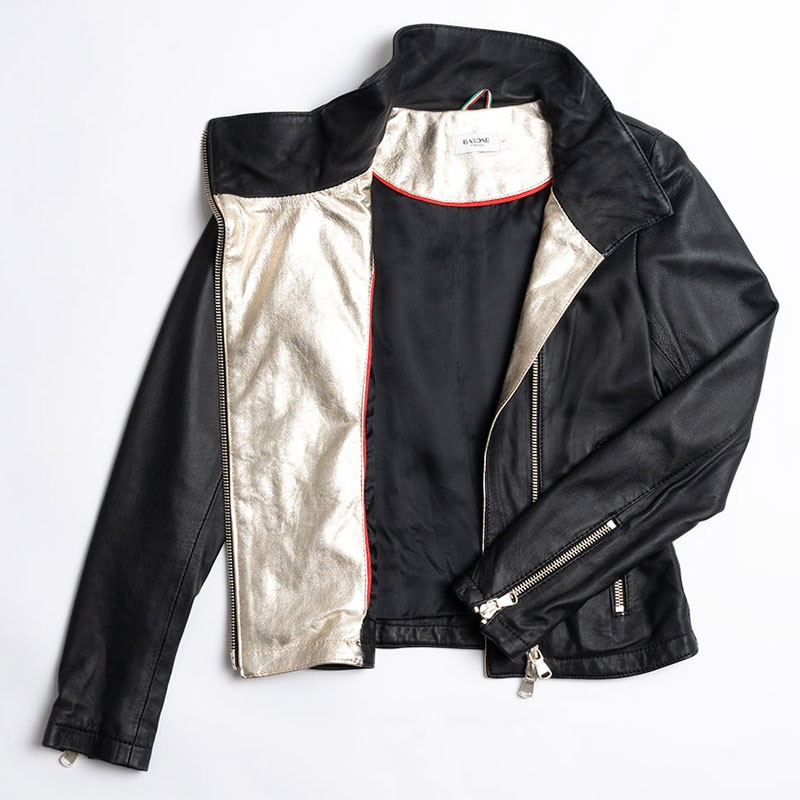 An exceptional balance of tradition and innovation. The Sally Bis model stands out for its eye-catching design and the shine of its metal zips. Perfect for those looking for a striking garment with unusual details.