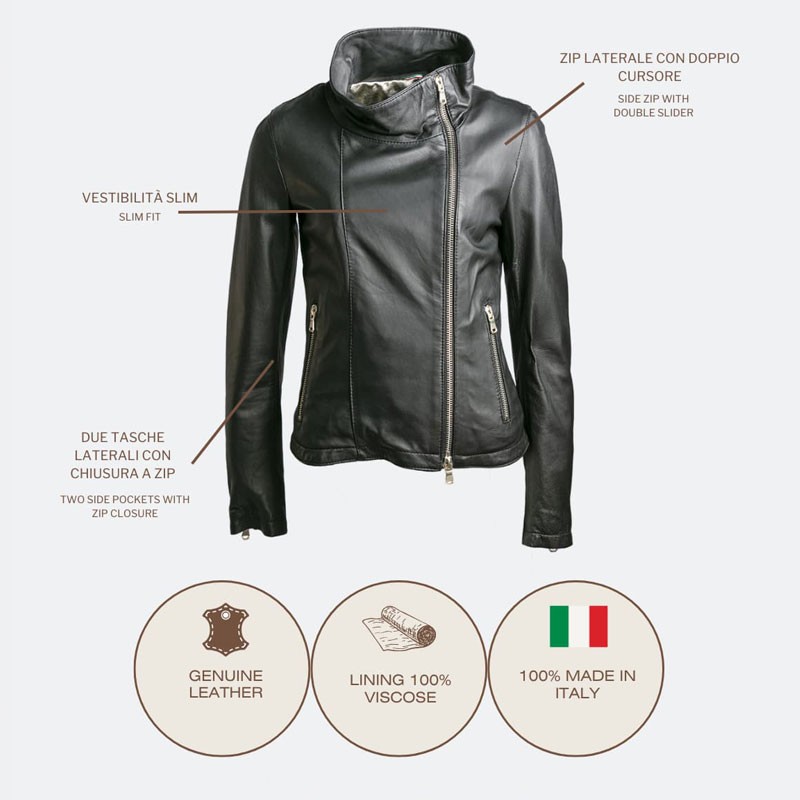 Women's jacket in genuine lambskin, 100% Made in Italy.