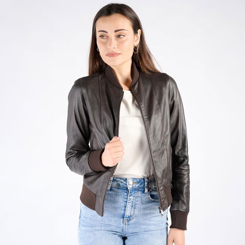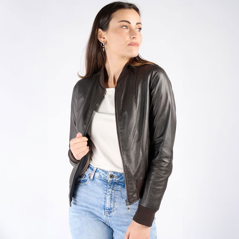 Women's jacket in genuine lambskin leather, 100% Made in Italy.