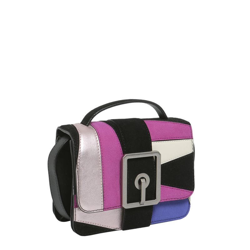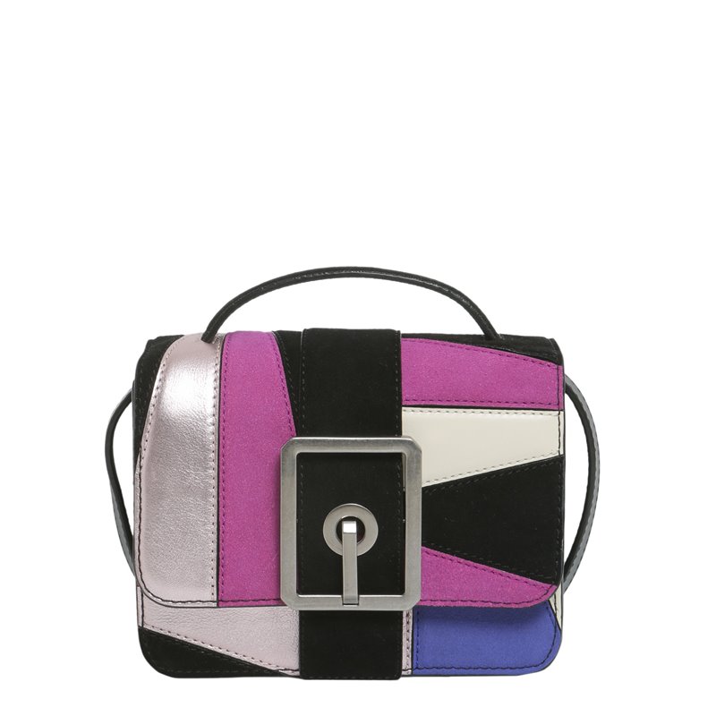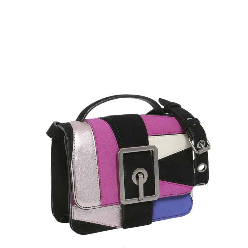 - ONE HANDLE - ADJUSTABLE CROSSBODY STRAP WITH METAL EYELETS - FLAP AND SNAP BUTTON CLOSURE - FRONT OVERSIZE METAL BUCKLE - MULTICOLOURED LEATHER INSERTS - THREE INTERNAL COMPARTMENTS AND THREE INTERNAL CREDIT CARD SLOTS - ONE BACK SLIT POCKET WITH METAL LOGO PLATE - SILVER COLORED METAL HARDWARE - LINED - SIZE: 13 X 18 X 7 CM - 100% LEATHER