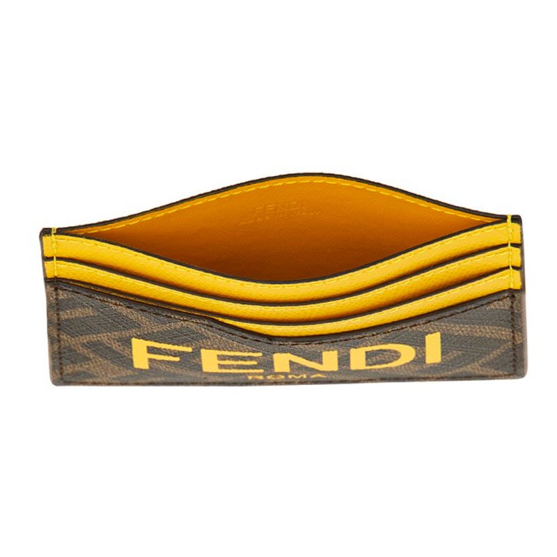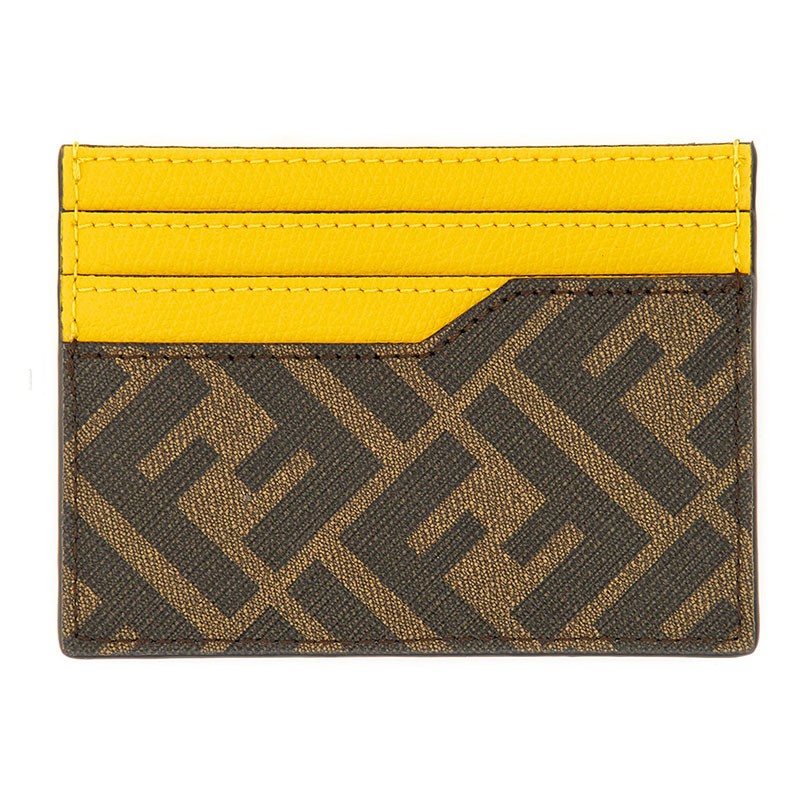 ブラウンのFFモチーフとコントラストのFENDI ROMAプリントをあしらった、ファブリックを使用したカードケース