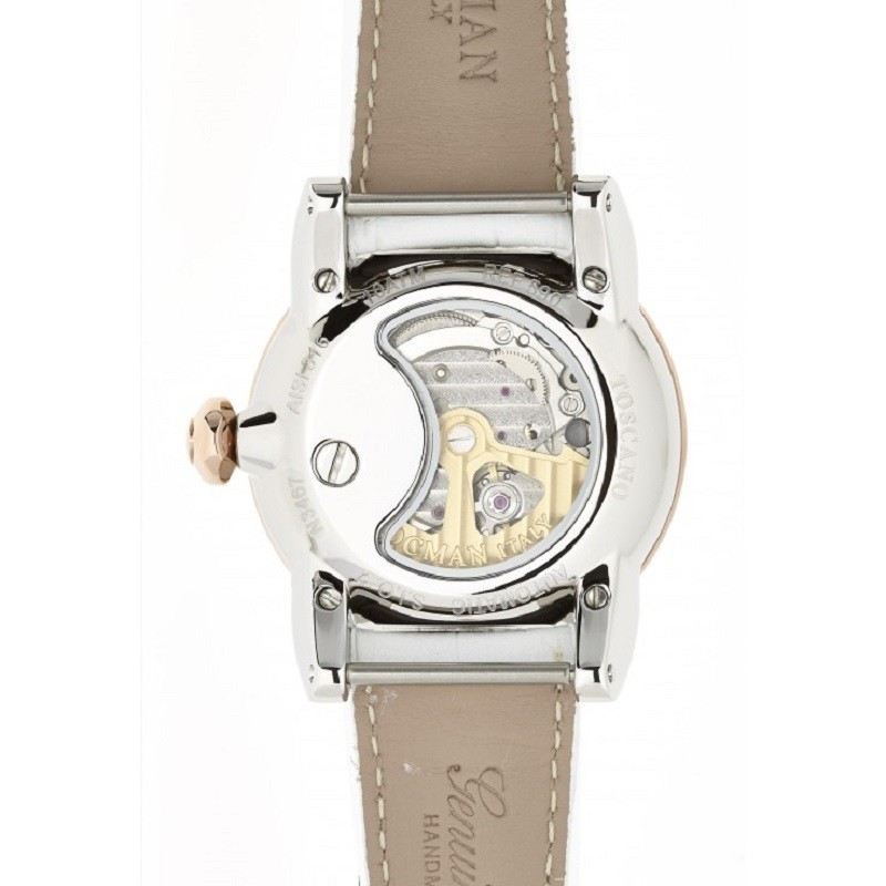 オートマチック、裏蓋もシースルー、ダイヤルはマザーオブパールを使ったロックマンならではの高性能、そしてエレガントなメイドインイタリーの逸品です。